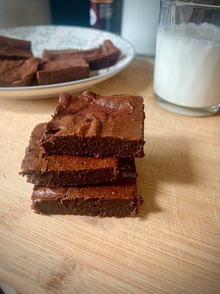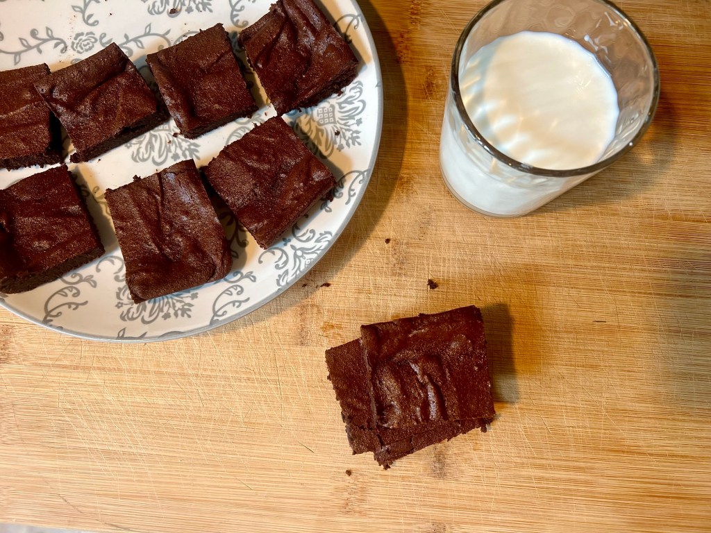 These are not quite a thick as they should be. I didn’t have a 9×9 pan so they ended up baking in a 9×11, so they are a little thin and sad. I think I will double the recipe next time and just bake them longer so they are extra thick and fudgy and happy, and make me happy!